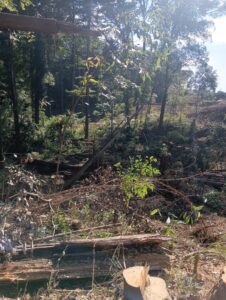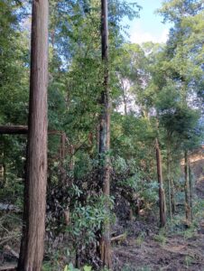 砂採り場の管理人様からご依頼をいただき、高さ25メートル程の木々の伐採を行いました。